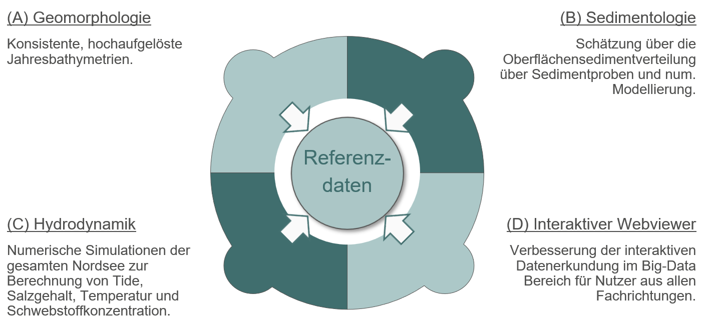 - die qualitätsgesicherten Geodaten für Geomorphologie, Sedimentologie und Hydrodynamik bereitstellt.