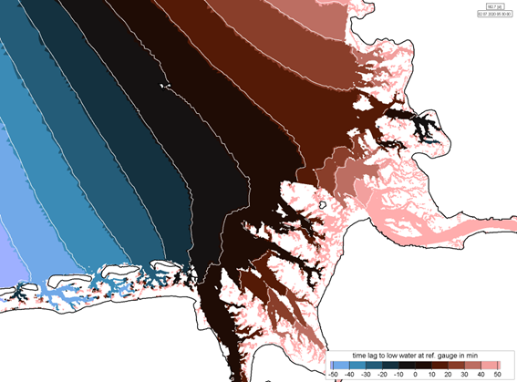 Aus den Berechnungen des digitalen Zwillings zum Verlauf von jährlich gemittelten Hochwasser- und Niedrigwasser-Linien können zusammen mit jährlichen Bathymetrien die jahresgemittelten Wattgrenzen bestimmt werden.