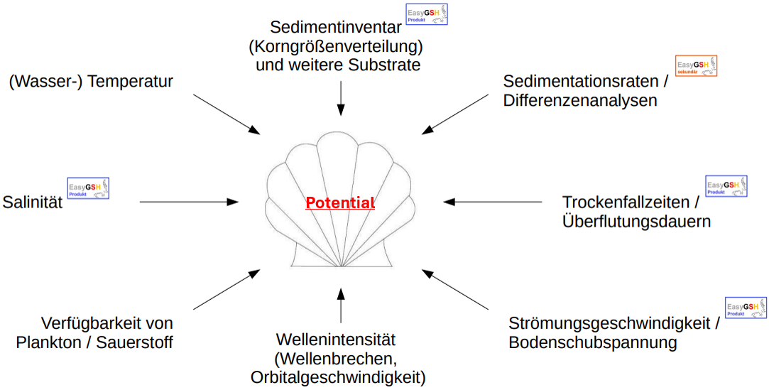 Biologische Lebensräume hängen von verschiedenen Eigenschaften ab, wie z. B. Überschwemmung, Salzgehalt, Strömungsgeschwindigkeit, Scherspannung oder Turbulenz. Zur Unterstützung bei der Identifizierung von Lebensräumen oder anderen Interessensgebieten mit spezifischen Eigenschaften wurde die Funktionalität zur Parameter-Verschneidung als webbasierte WPS-Funktionalität entwickelt. Diese Funktion verschneidet Parameter-Daten on-the-fly und bietet eine Download-Option für das Ergebnis.